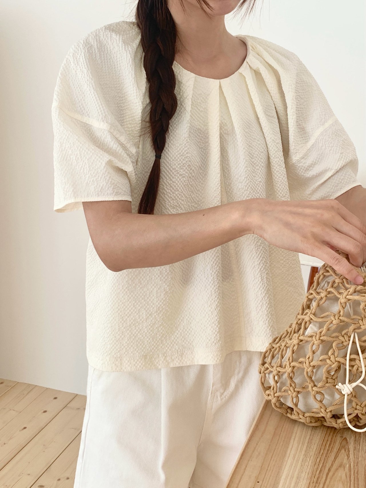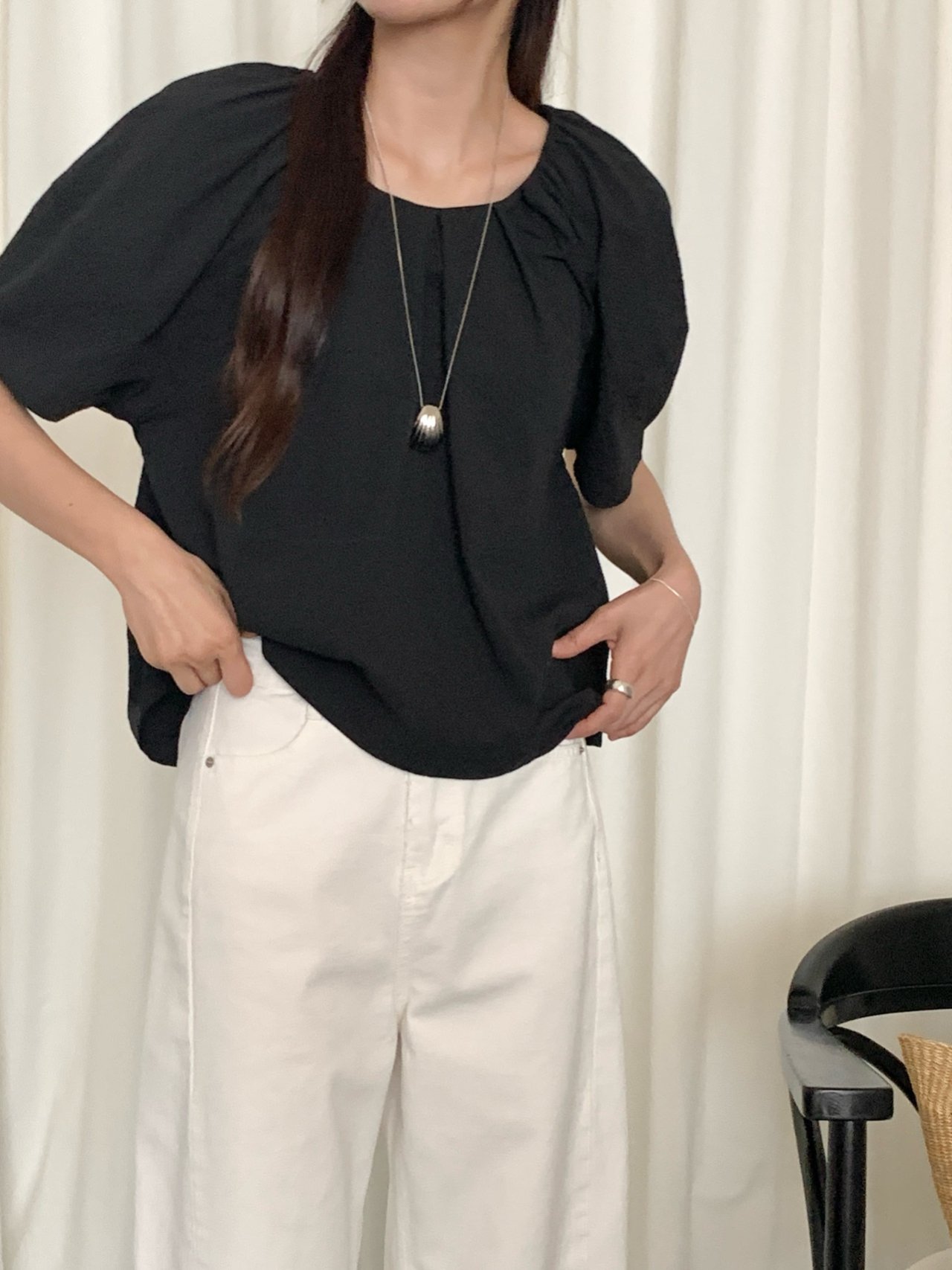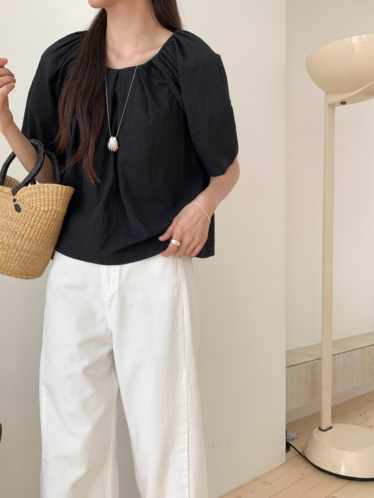 | Description | The Bubble Blouse features softly puffed sleeves and a relaxed, flowing silhouette. Delicate gathers around the neckline add a subtle feminine touch, creating a light and refined look that pairs perfectly with any bottoms for the summer season. |