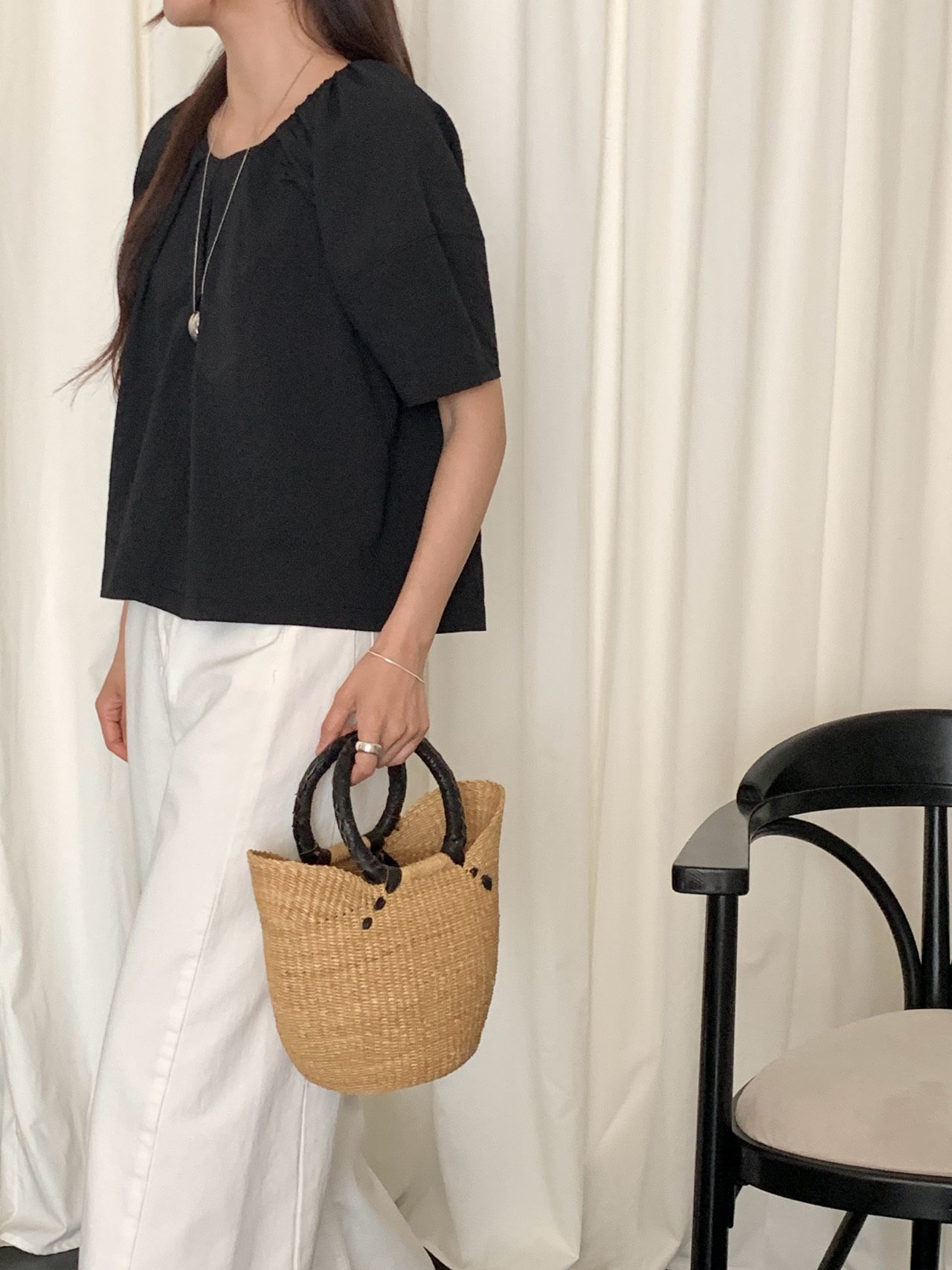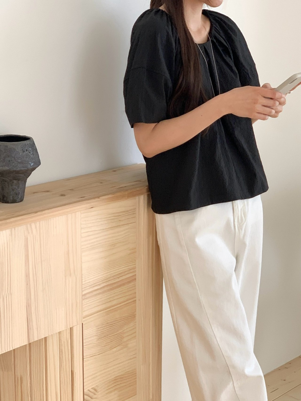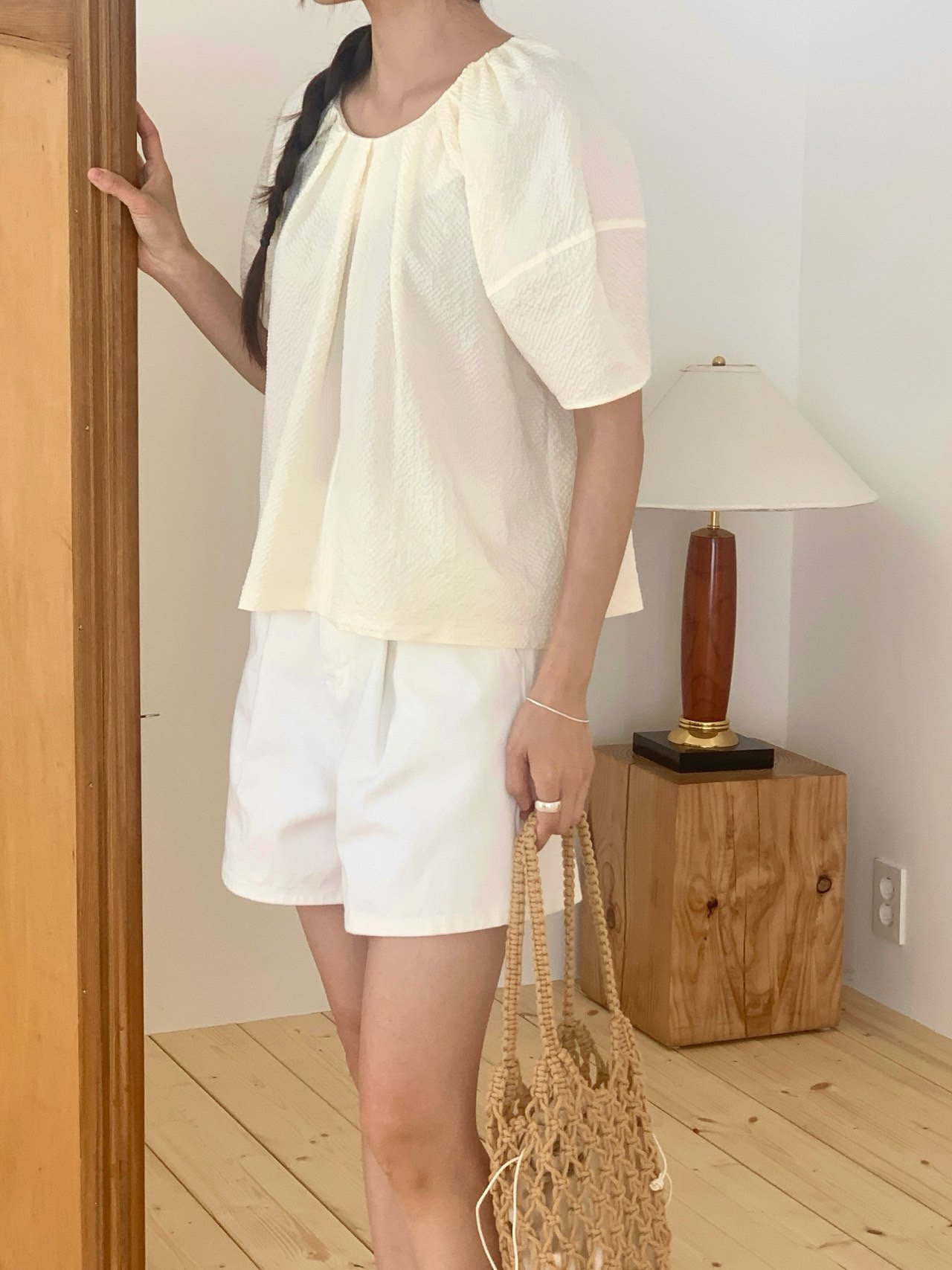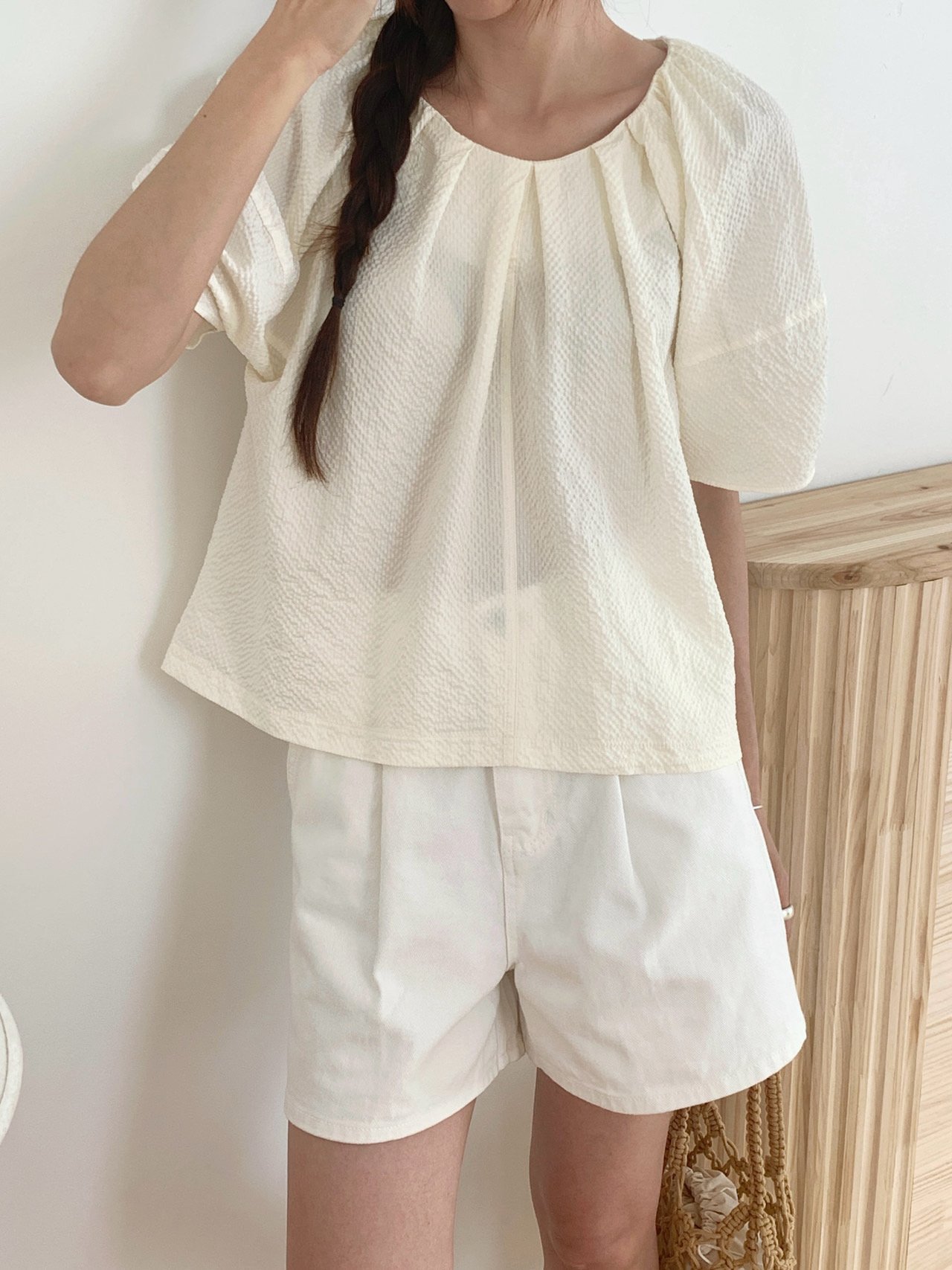 | Description | The Bubble Blouse features softly puffed sleeves and a relaxed, flowing silhouette. Delicate gathers around the neckline add a subtle feminine touch, creating a light and refined look that pairs perfectly with any bottoms for the summer season. |