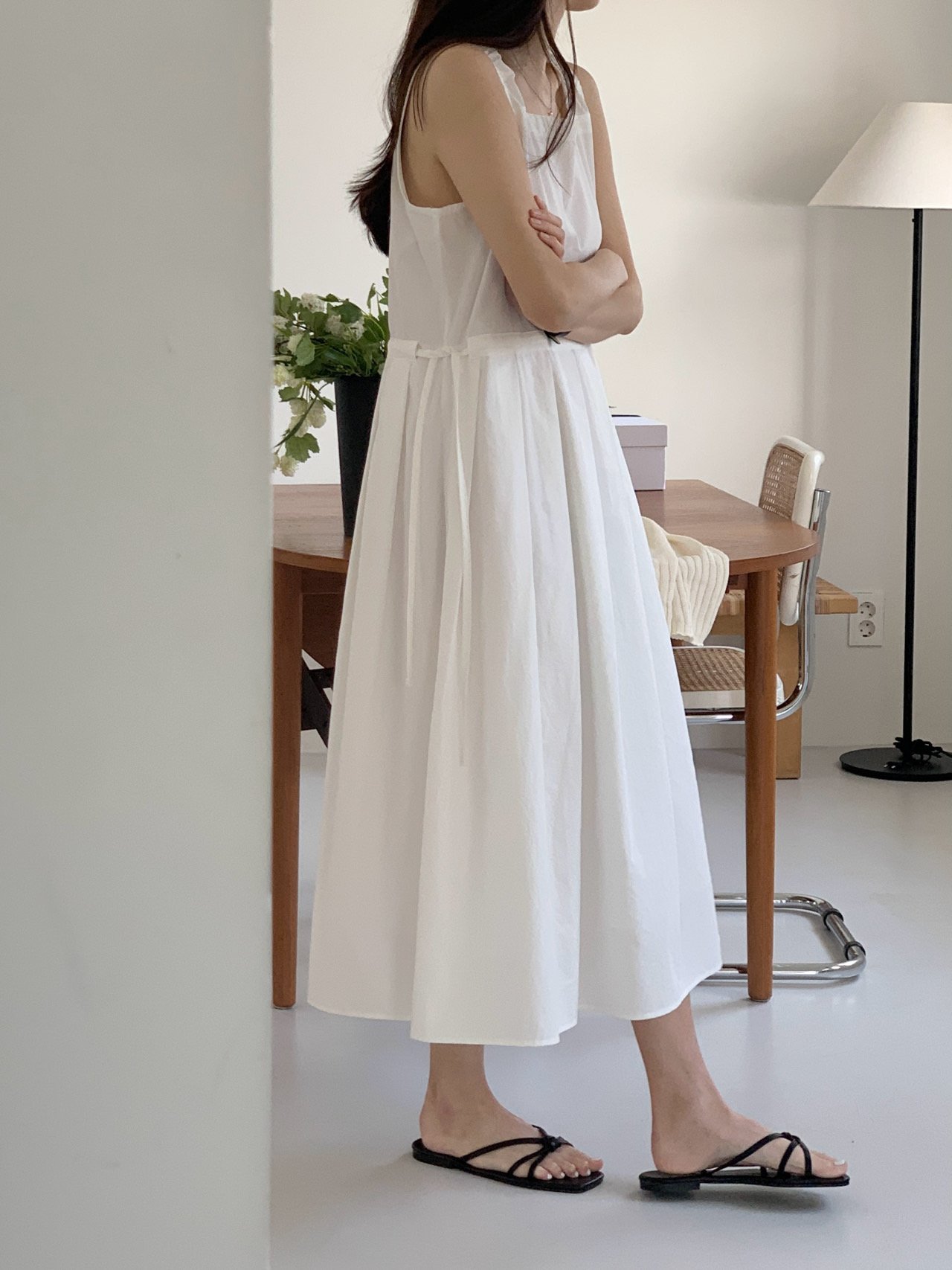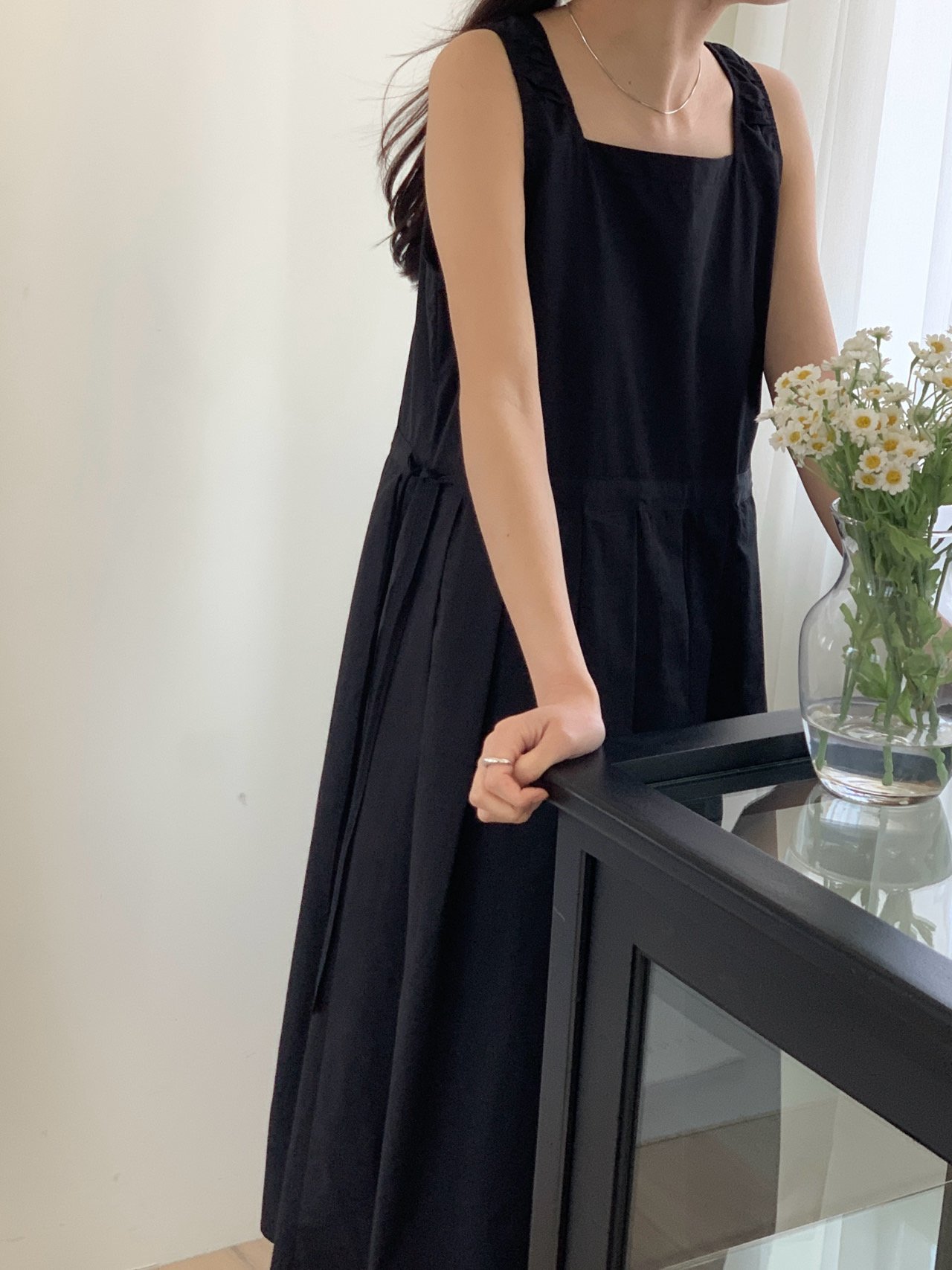 | Description | The Comme Knotted Dress features a square neckline and a softly flared silhouette that flows with each step. Designed with a waist tie detail, it creates an elegant balance between structure and ease, perfect for effortless daily wear. |