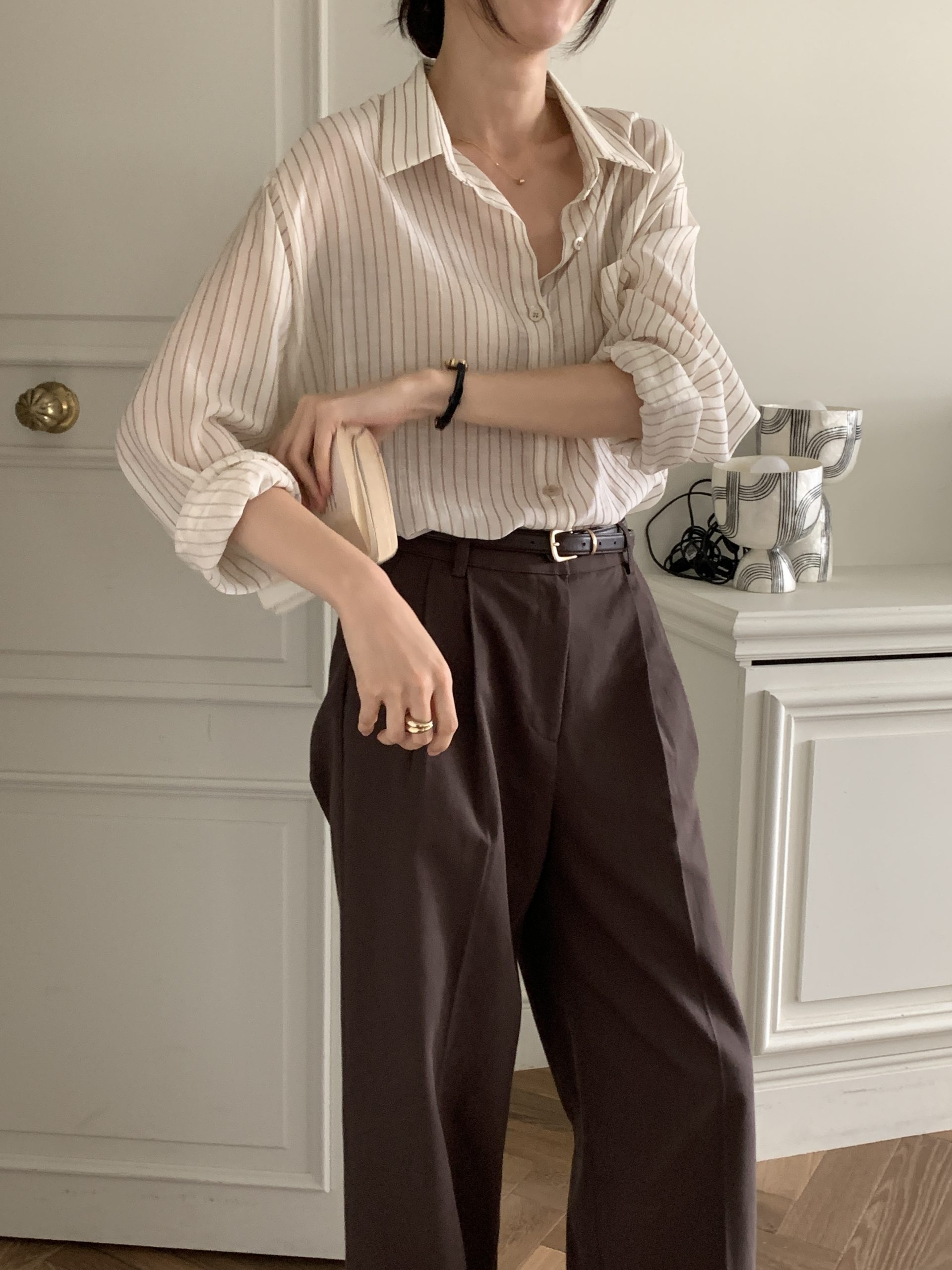 Description Lightweight and flexible fabric with a minimal stripe pattern, perfect for both daily wear and business casual.